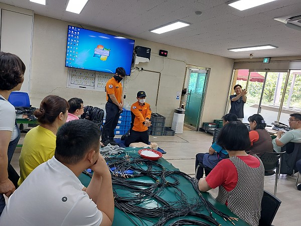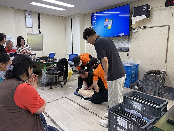 20250617 동읍소방서 연계 소방안전교육 및 대피훈련 페이지 정보 작성자 예향 작성일25-06-18 08:24 조회1,077회 댓글0건 이전글 다음글 목록 본문 동읍소방서와 연계하여 화재 발생 시 신속하고 체계적인 대응 조치에 대하여 훈련으로 대피훈련 및 심폐소생술 교육을 하였습니다. 불이났을때 "불이야!" 외치며, 낮은 자세로 교사들의 안내에 따라 밖으로 대피하고, 심폐소생술과 소화기 사용방법을 익히기도 하였습니다. 주기적인 훈련을 통해 재난상황 발생에도 피해를 최소화하고 이용자분들의 보호와 안전에 더욱더 노력하는 예향복지센터가 되겠습니다. 댓글목록 등록된 댓글이 없습니다. 이전글 다음글 목록