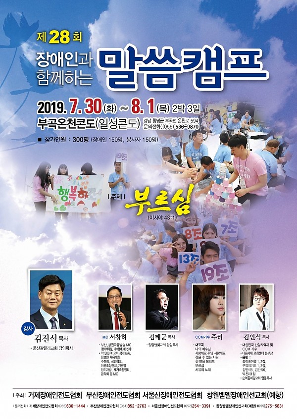 제28회 장애인과 함께하는 말씀캠프 페이지 정보 작성자 예향 작성일2019-07-16 17:42 조회7,368회 댓글0건 이전글 다음글 목록 본문 제28회 장애인과 함께하는 말씀캠프! 올해도 많은 관심과 기도 부탁드립니다 댓글목록 등록된 댓글이 없습니다. 이전글 다음글 목록