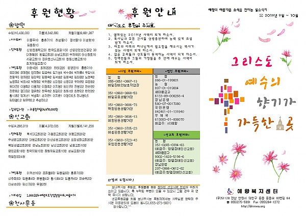 예향 9~10월 소식지 입니다^^ 페이지 정보 작성자 예향 작성일2019-12-02 14:22 조회6,755회 댓글0건 이전글 다음글 목록 본문 댓글목록 등록된 댓글이 없습니다. 이전글 다음글 목록